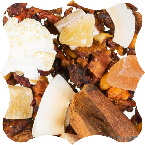 Rich aroma of cinnamon sticks blended with the thick pineapple juices dissolved in beetroot and raisins. Gingerbread House Mild brings the sweetness of apples and the richness of roasted almonds with a bunch of coconut freshness- all-in-one tea that brews and brews like a hazy Christmas night. Have this tea with your friends and family during those chilly winter breaks by the fence, watching the clouds glide over the moonlight. You can’t miss this blend of perfect flavors for a soothing soul.